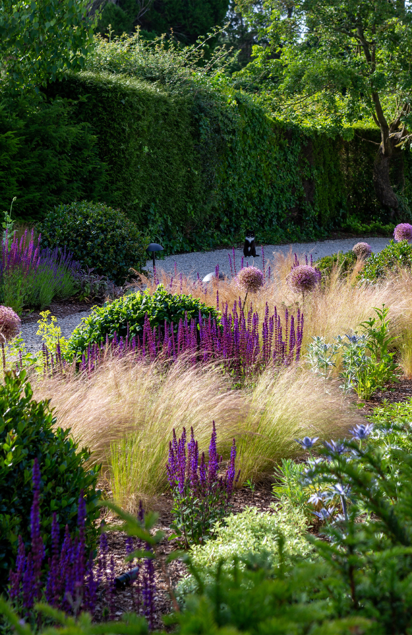 Another favourite of ours is Stipa tenuissima. Its fine, soft texture offers a delicate contrast to bold, green-leafed perennials and bright-coloured flowers. Incorporating large swathes of this grass helps to soften spaces and catches your eye as it moves with a light breeze.