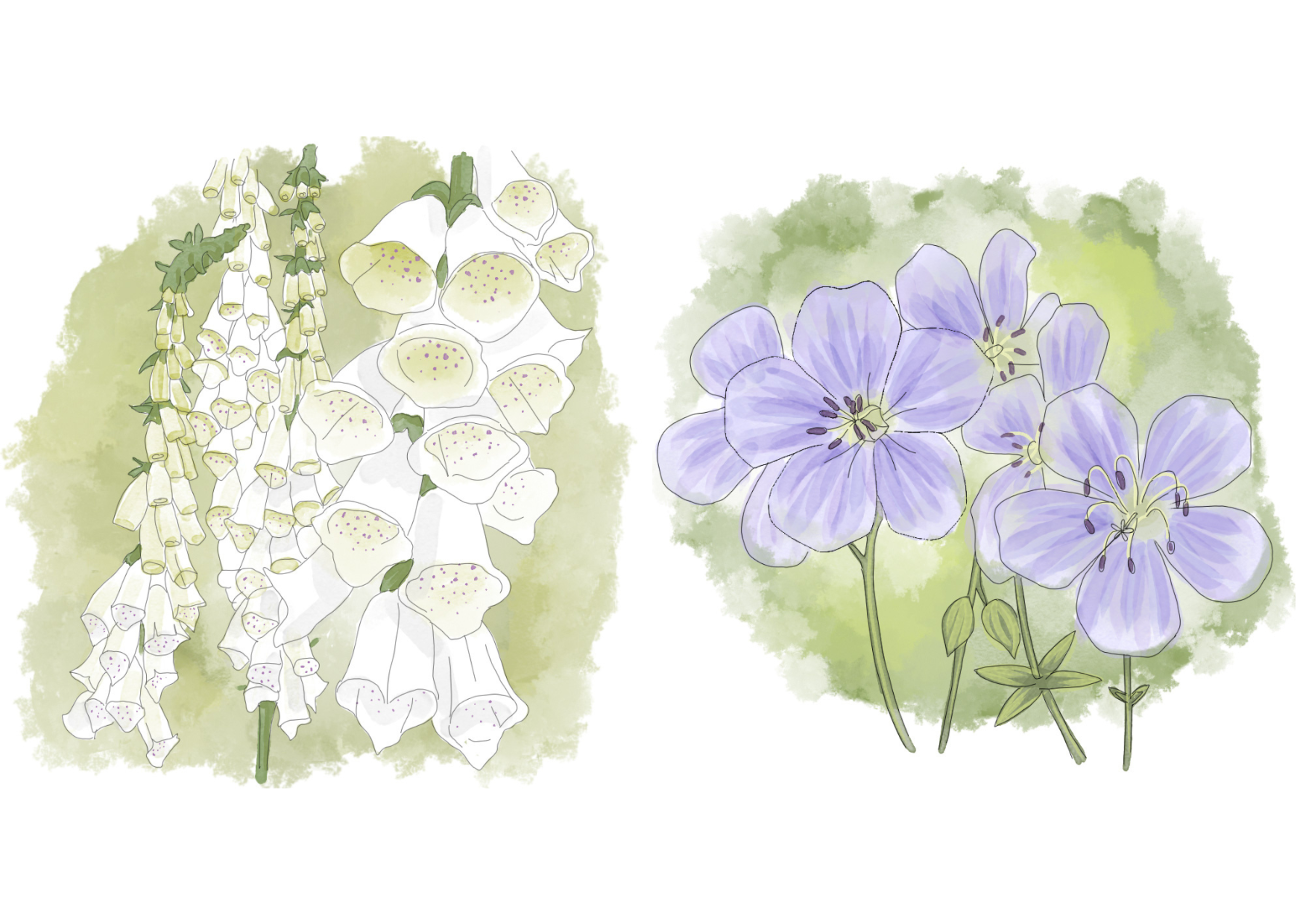 From there, the planting evolved into a naturalistic woodland scheme. We focused on soft colours and subtle textures — greens, whites, and pale blues using a curated mix of perennials. We selected ferns and grasses for their ability to thrive in dappled shade and they lend a gentle, layered quality to the planting.