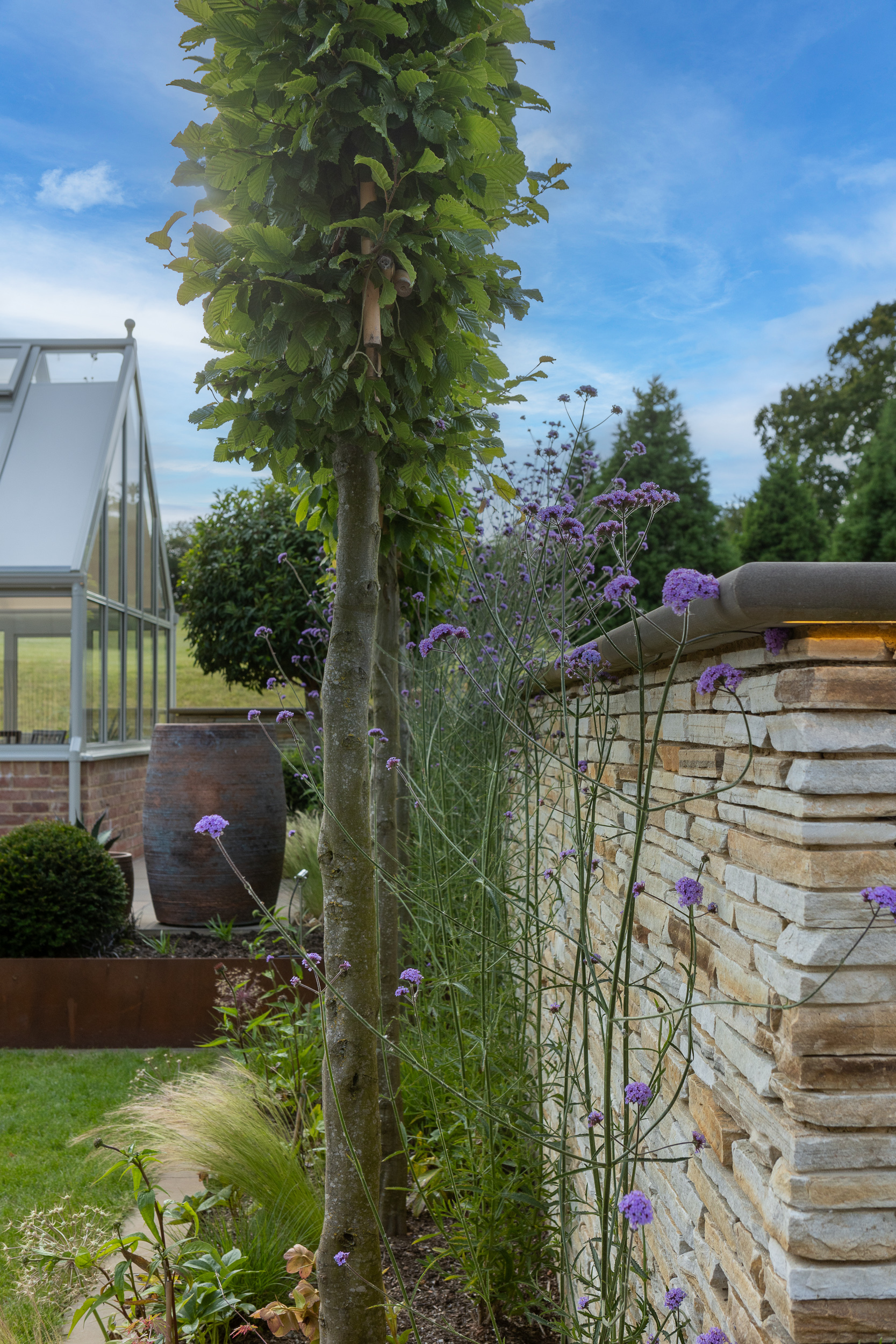 With heavier rainfall becoming more common, trees play a crucial role in managing water. Deep-rooted species such as alder and hornbeam help stabilise soil, reduce surface runoff, and encourage infiltration. Their canopies slow the force of heavy rain, protecting both planting and hardscape.