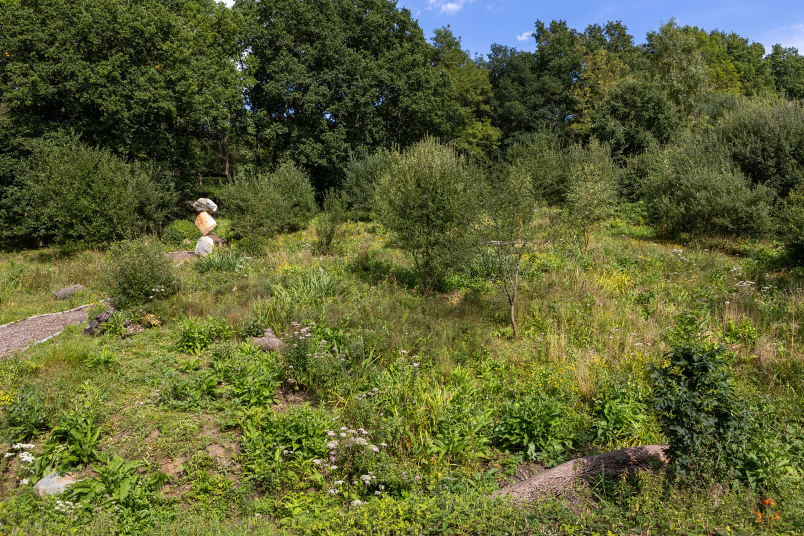 The planting scheme enhances the existing landscape, with native species and naturalised wildflowers added to the woodland edge meadow. The planting choices add pops of colour while supporting local biodiversity, and creating a thriving ecosystem to encourage pollinators and bees.