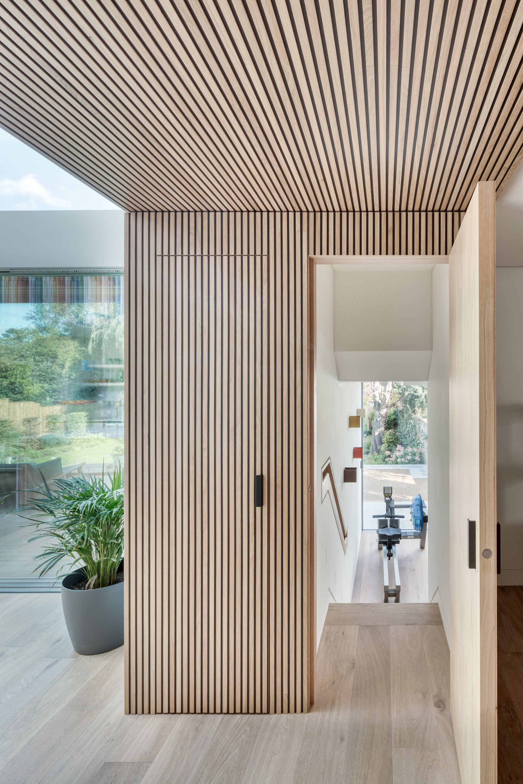 Among the many planning and environmental constraints connected with developing a contemporary new build – and one in an established residential setting – were those relating to its situation within a high flood risk zone. The design sees the structure elevated over hidden piled foundations to provide protection against any possible future flooding, without compromising the clean lines and fresh timber cladding.