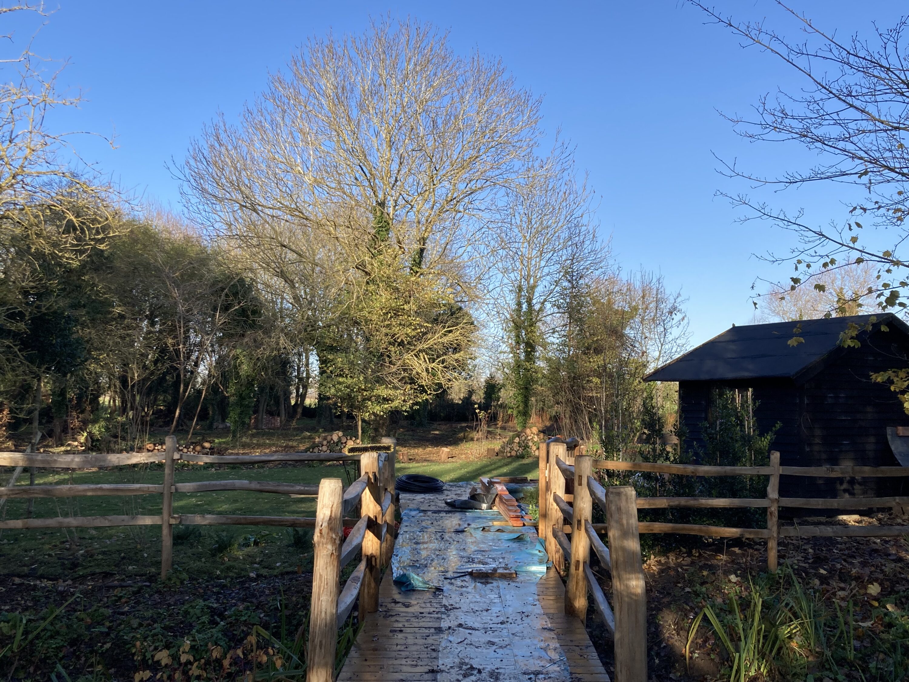 The site is in the greenbelt and our designs were purposefully sympathetic to the local landscape, gaining approval from Natural England. Planning was challenging due to site complexities, on top of which the project was commissioned during the Covid pandemic. A local farmer granted access through his field to access the site in the least environmentally disruptive way, with tracks laid to minimise damage. We asked Woodland Trust to visit during the build to certify that our processes were carried out in as ecological way as possible, with only some minor design changes made to the woodland paths routes to work within the setting.