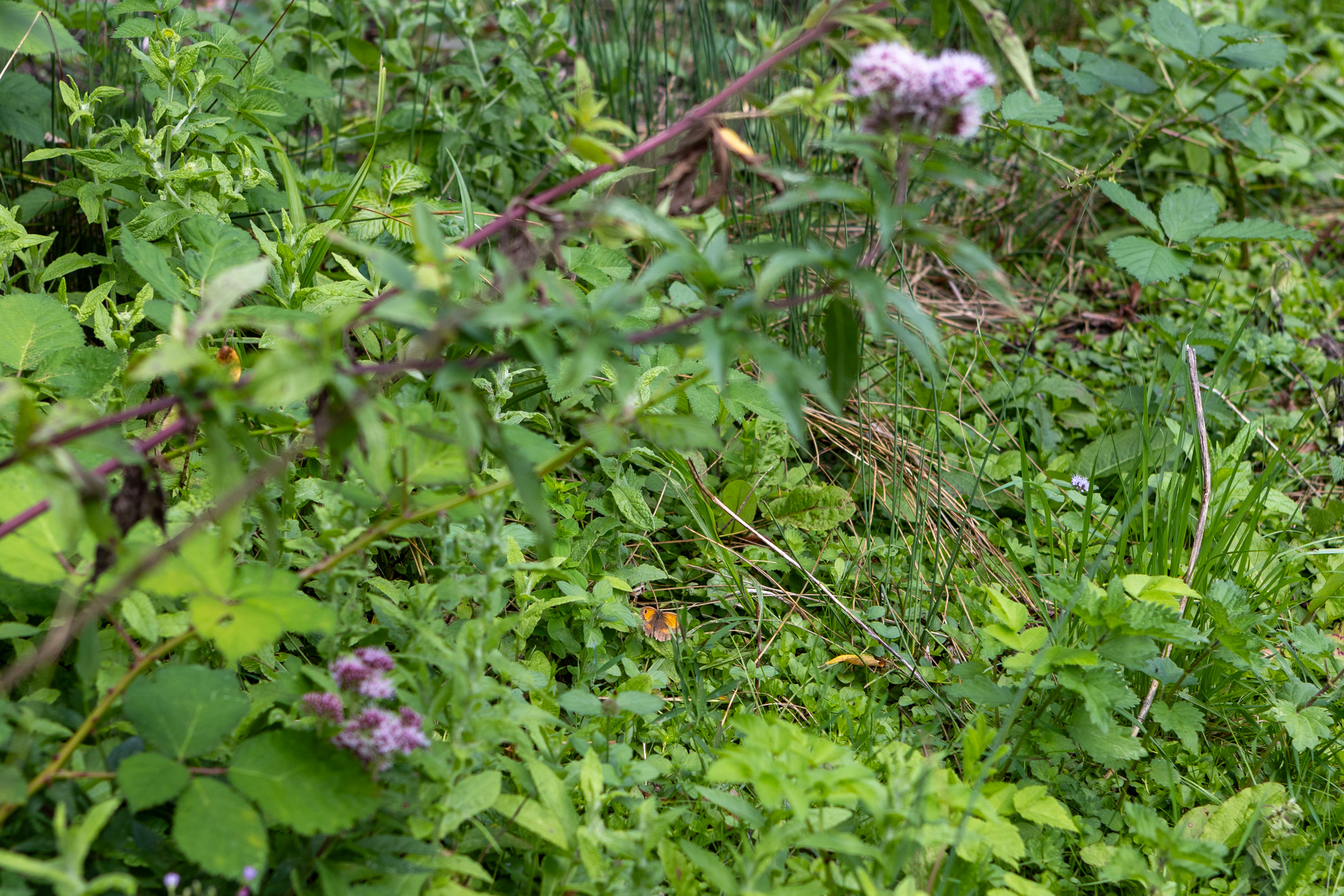 Digs outs from forming the pond were reused to create hibernaculas for reptiles and amphibians. Dead or fallen trees were felled and used to create decorative log piles, stumperies and edging for woodland paths as well as wildlife habitats. Large areas of cow parsley and nettles were protected to celebrate the garden’s existing natural beauty and biodiversity, and cut offs from turf were added to the log piles, creating small environments which ants and woodlice particularly love.