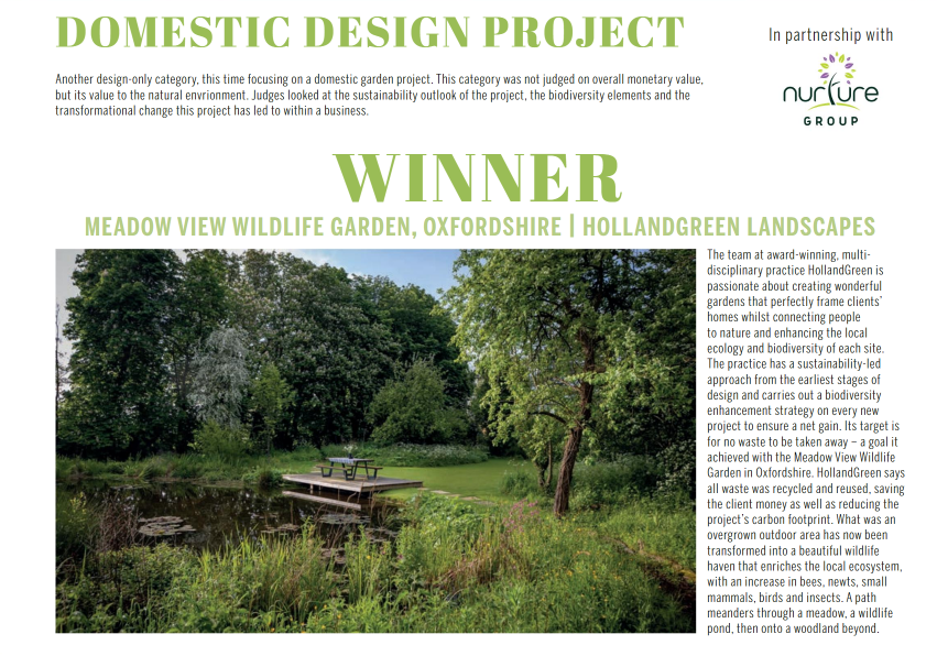 Award Win! Domestic Design Project of the Year 2023 at the Pro Landscaper Sustainability & Biodiversity Awards.