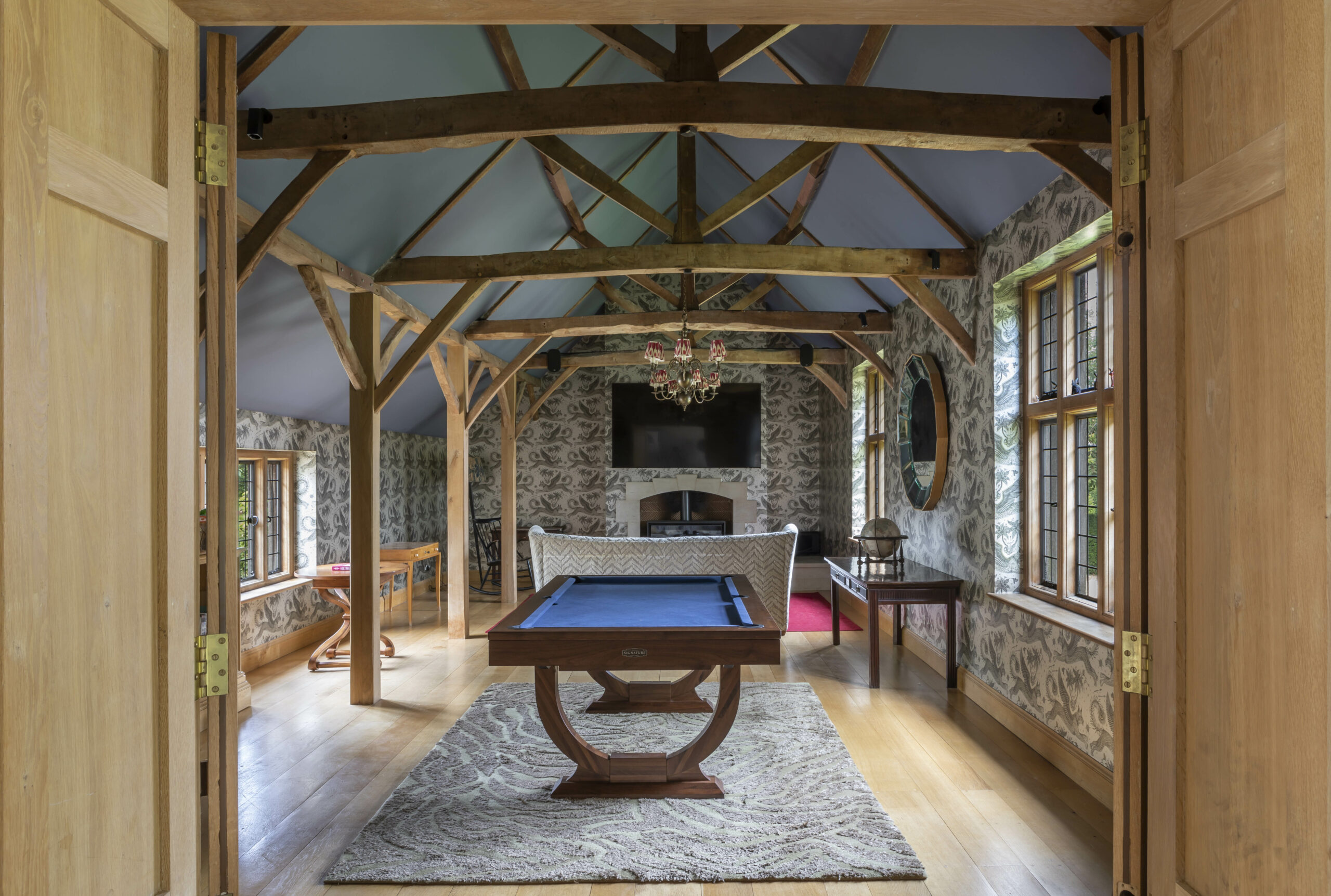 Mimi’s initial intention was to link the main home with the barn via a discrete glass corridor. However, now that her family is older, she is glad that the two buildings remain separate. In the barn, alongside the stunningly elegant double-heighted adult dining room, there is lots of space for teenagers. As she told Katrina Burroughs in the feature in The Sunday Times, “It’s better not having it connected. My children use the barn as a party house. It works brilliantly. We have the games room and the big TV and Xbox over there. They can cook over there and I can shut the door and leave the mess – and just send them in with their mops in the morning!”