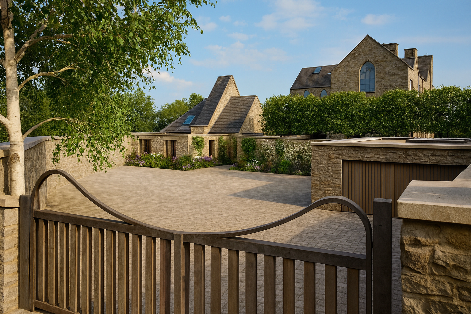 At Woodacre House, our brief was to revitalise the garden by integrating contemporary outdoor living elements with the existing charm of this Cotswolds home. The clients envisioned a refined outdoor kitchen, a secluded hot tub area, and expanded parking to support daily life and entertaining. Crucially, they sought a solution that would feel rooted in the character of the property—enhancing, rather than altering, its quiet sense of place.