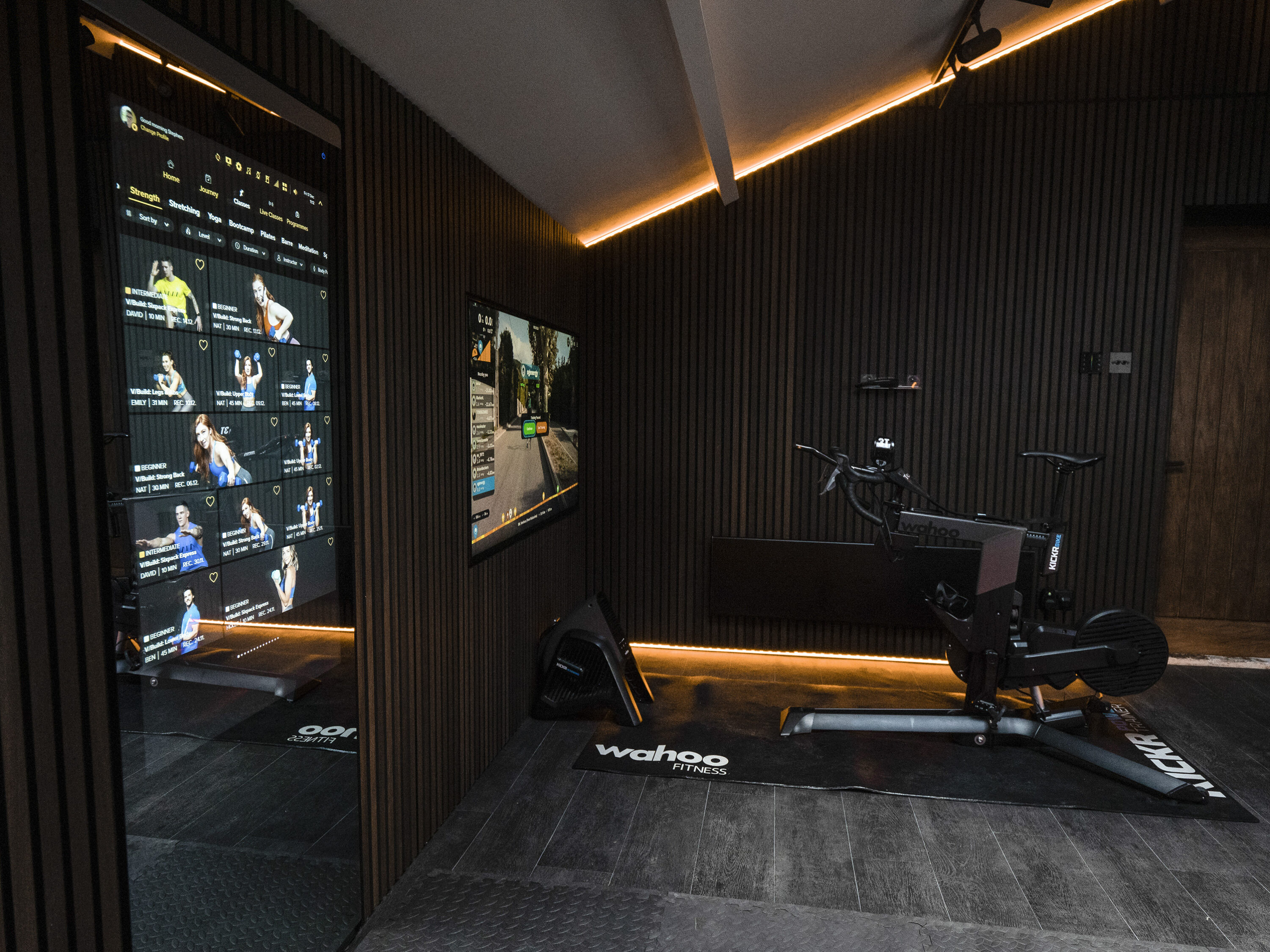 The studio integrates cleverly concealed LED mood lighting that can be easily customised to tailor the space for a variety of workouts.