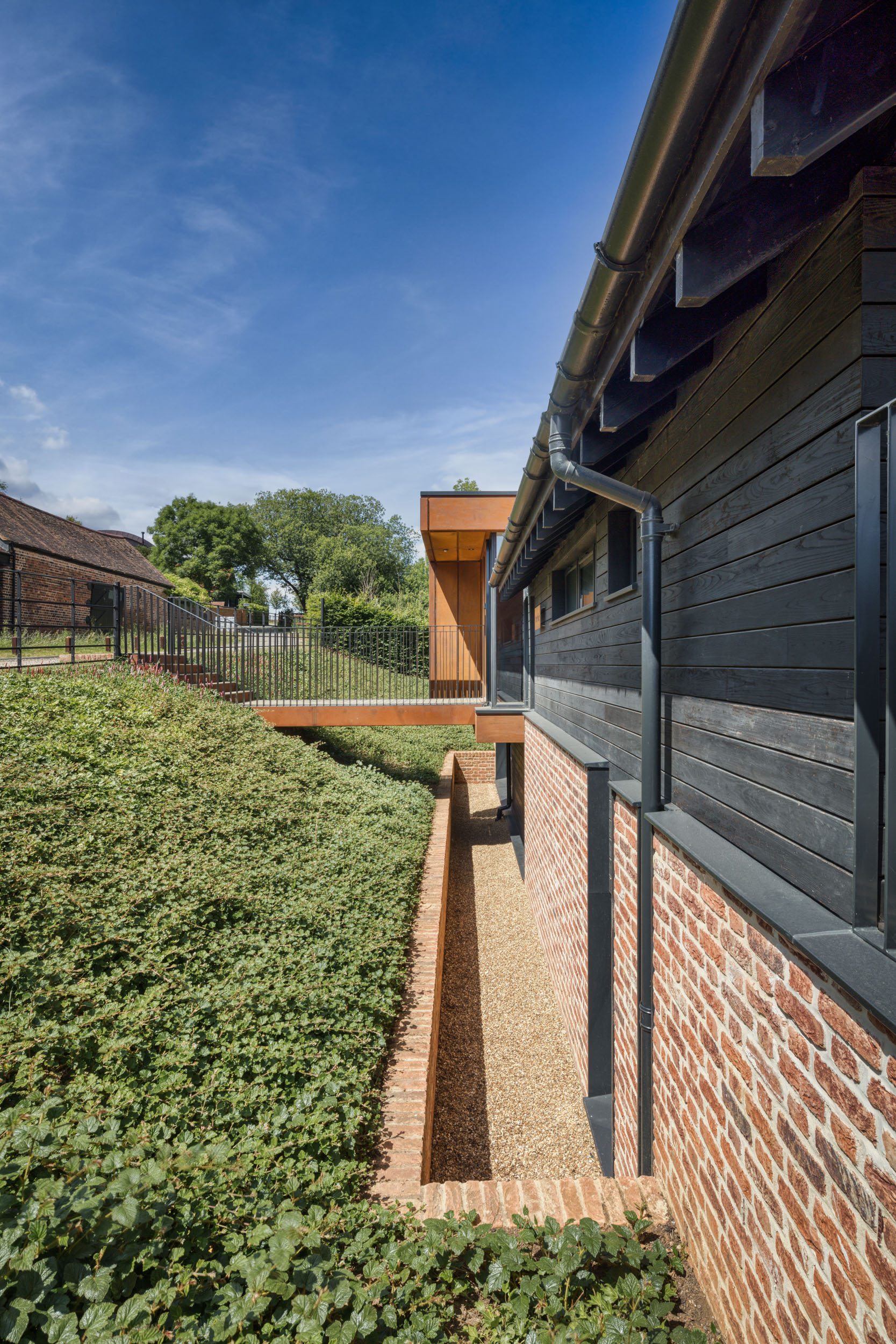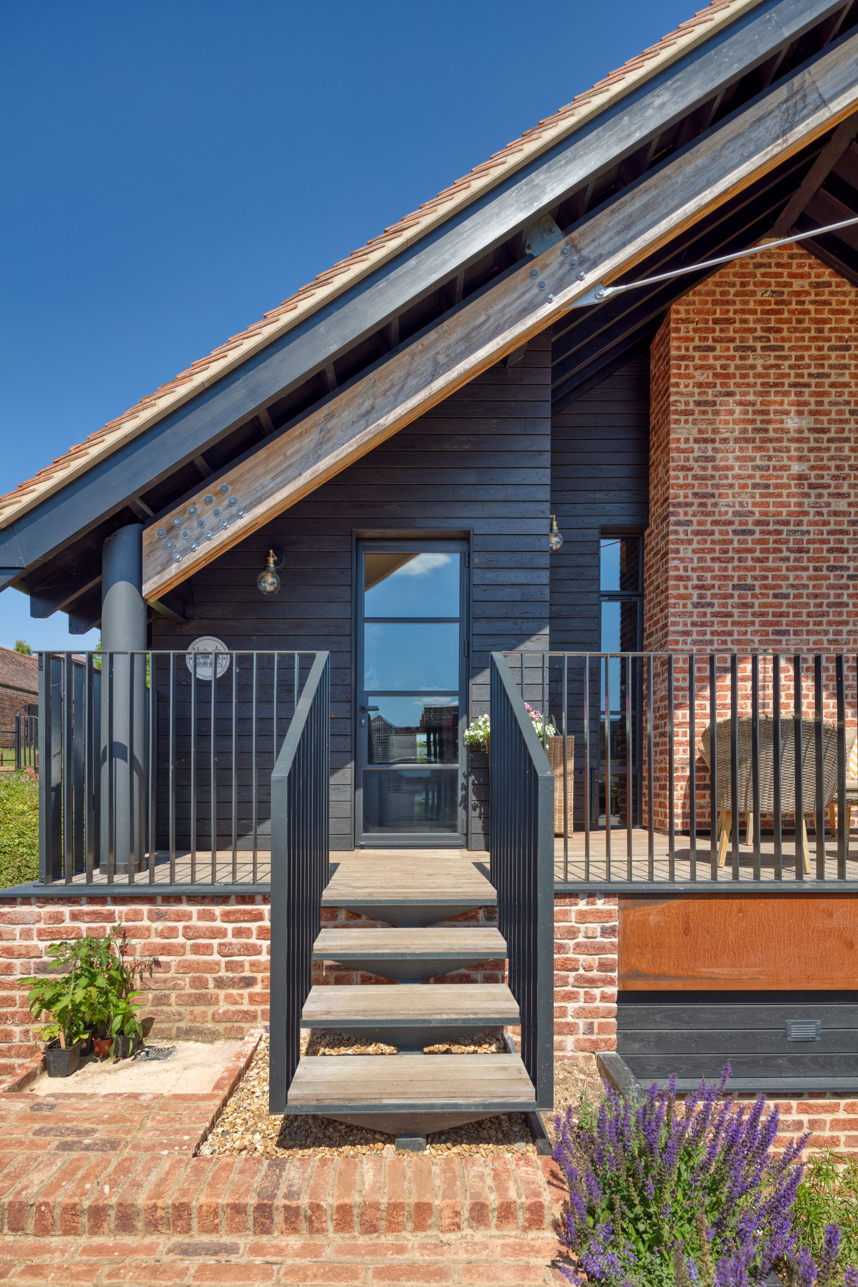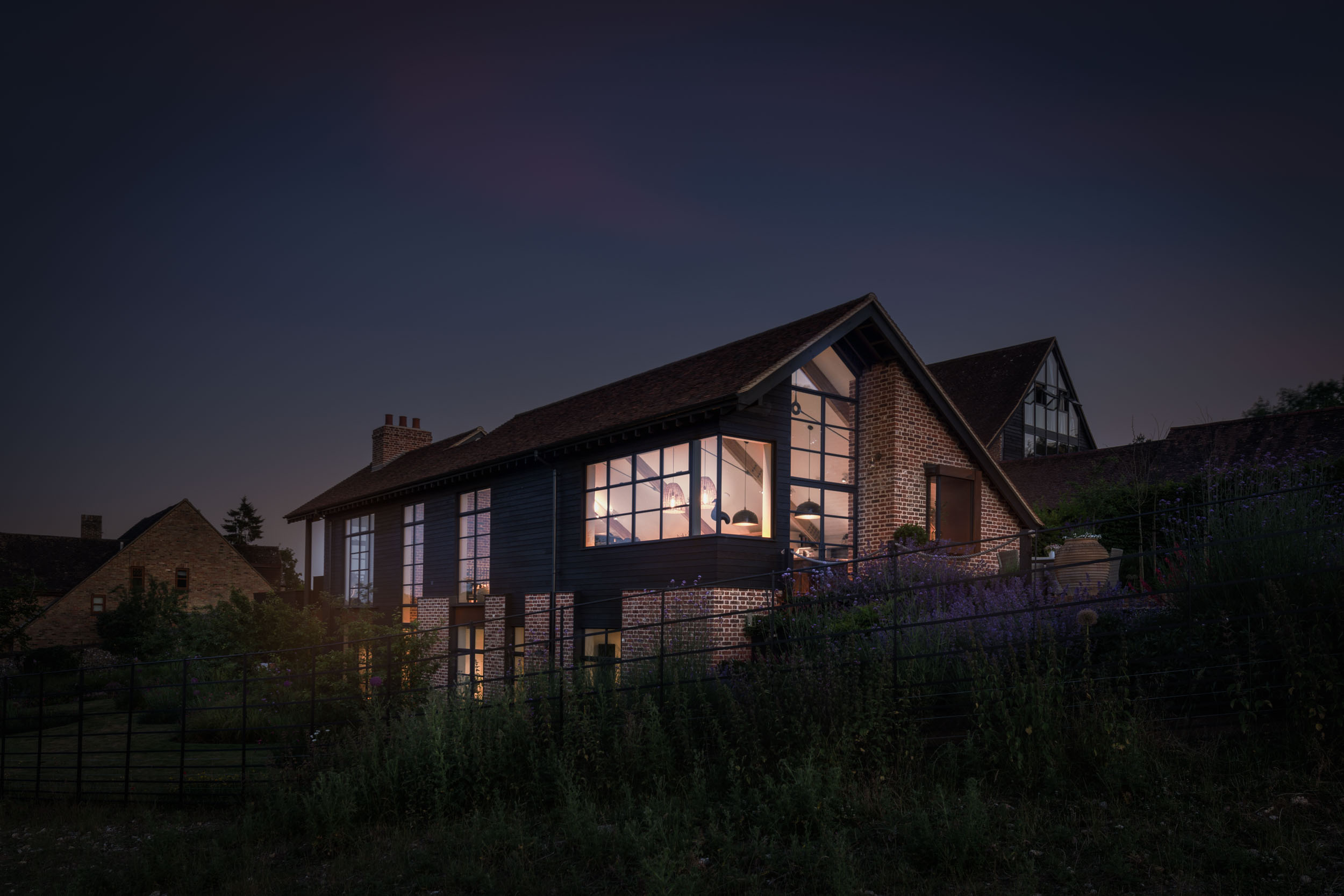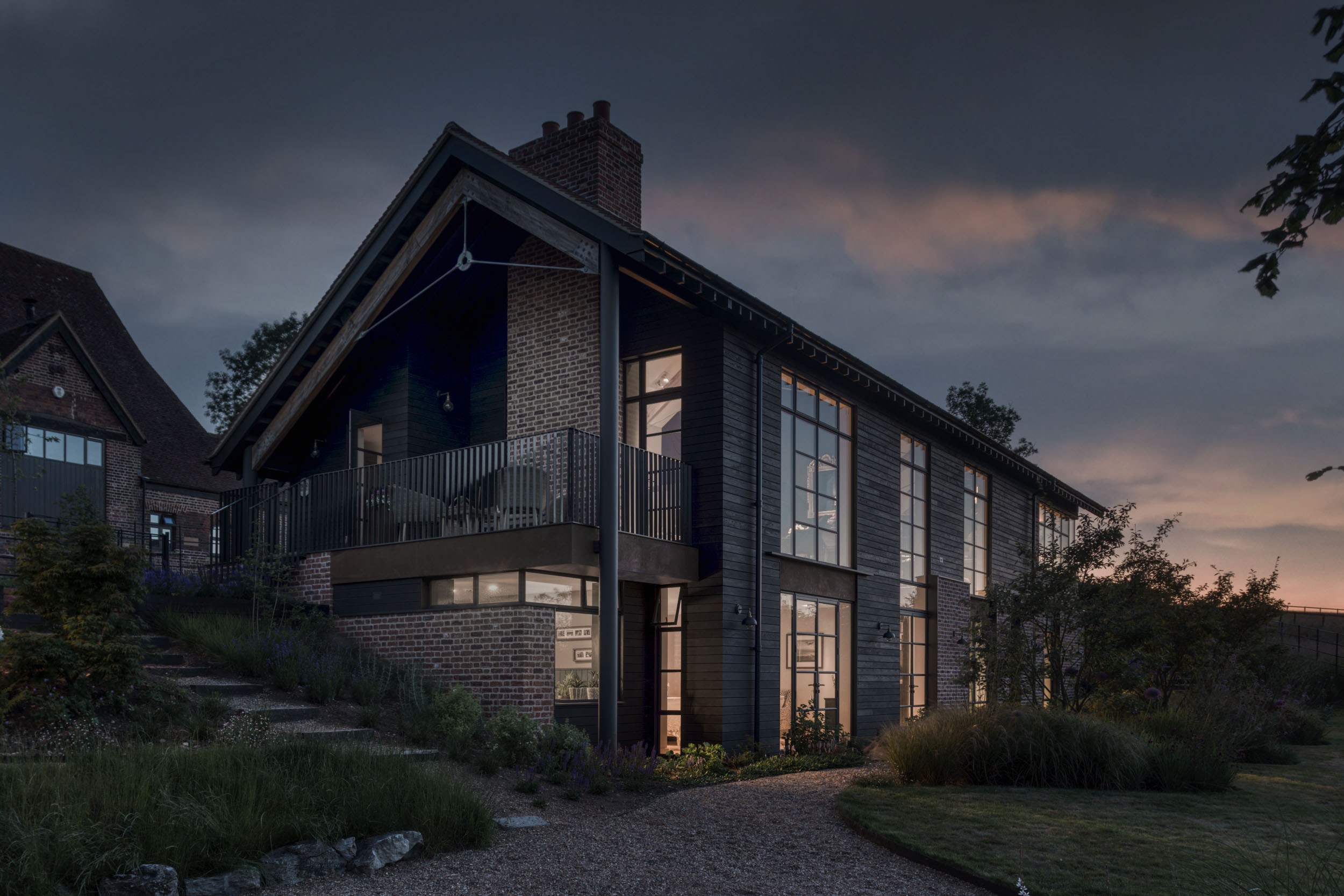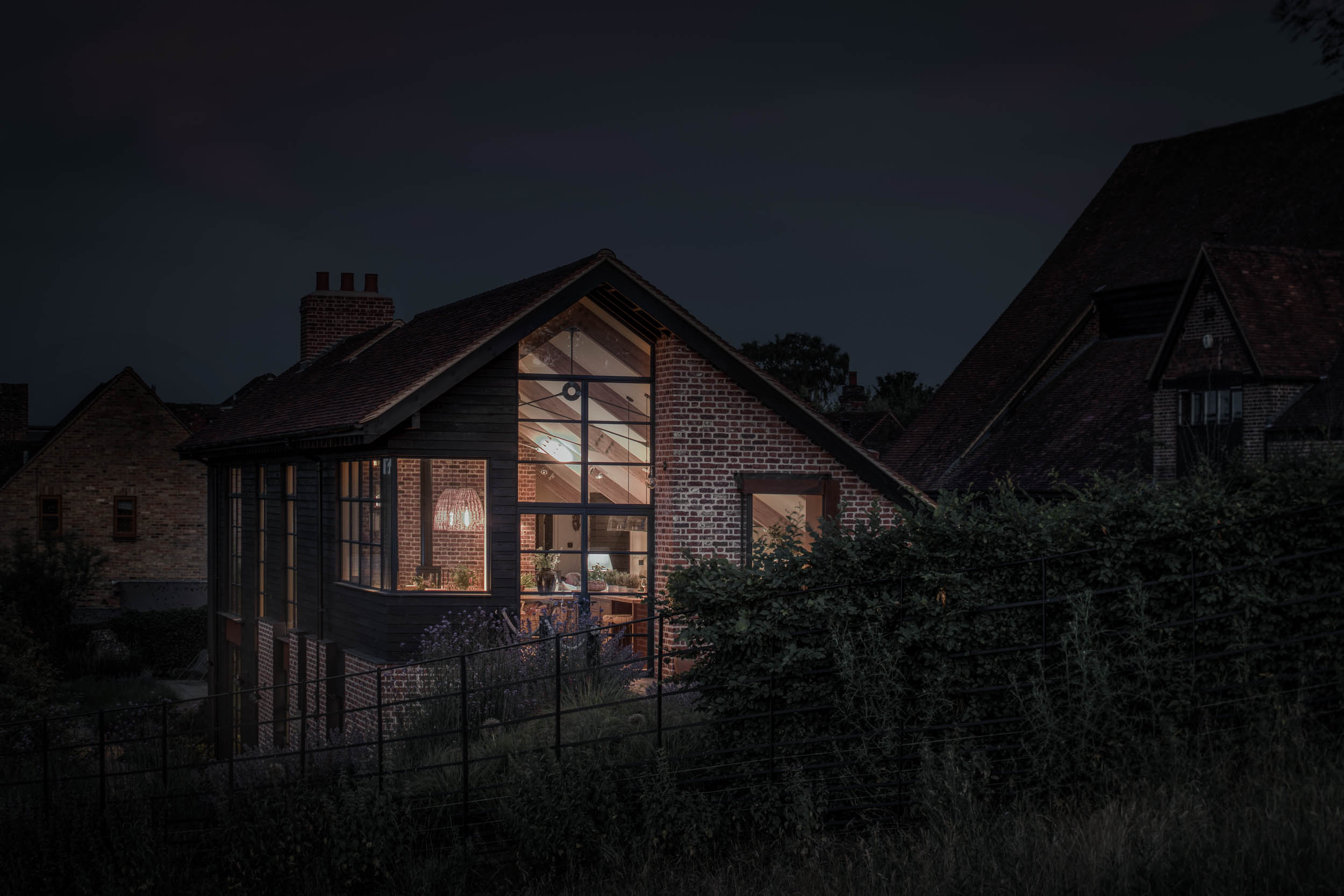 The design marries the Chiltern Hills Design guide with our clients’ brief for a contemporary, spacious family home. Chiltern red brick and black timber cladding integrates the building with the local vernacular, whilst Crittal windows and Corten steel accents achieve the desired industrial aesthetic.