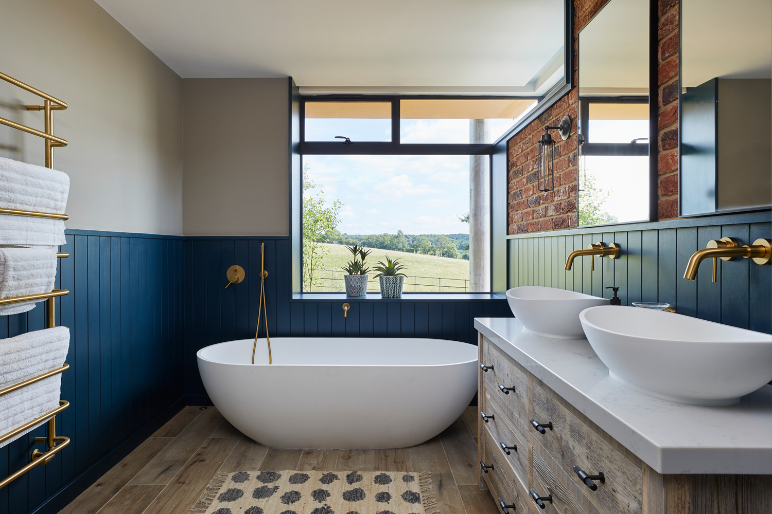 In this new build, replacement dwelling, the Interiors team designed a series of modern and industrial-style spaces that draw on the exceptional views of the surrounding valley.  Large windows allow the countryside views to take centre-stage, while exposed brick and contemporary style elements establish a strong sense of character throughout.